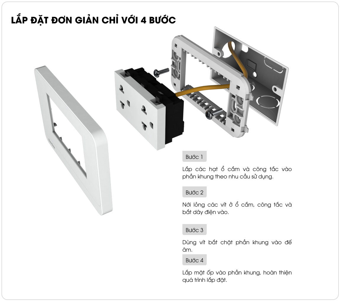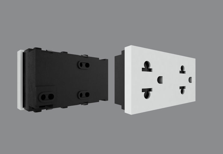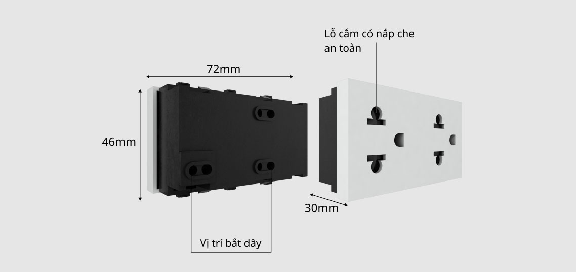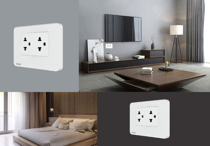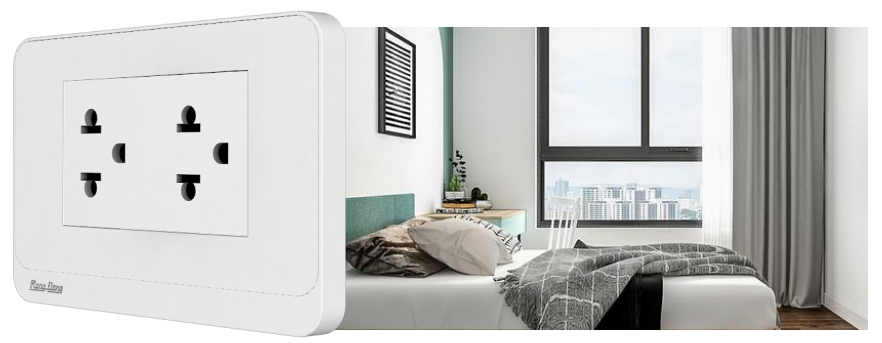 Hạt ổ cắm đôi có thể lắp vào mặt ốp ba, phù hợp với mục đích sử dụng của từng gia chủ và từng khu vực trong nhà.