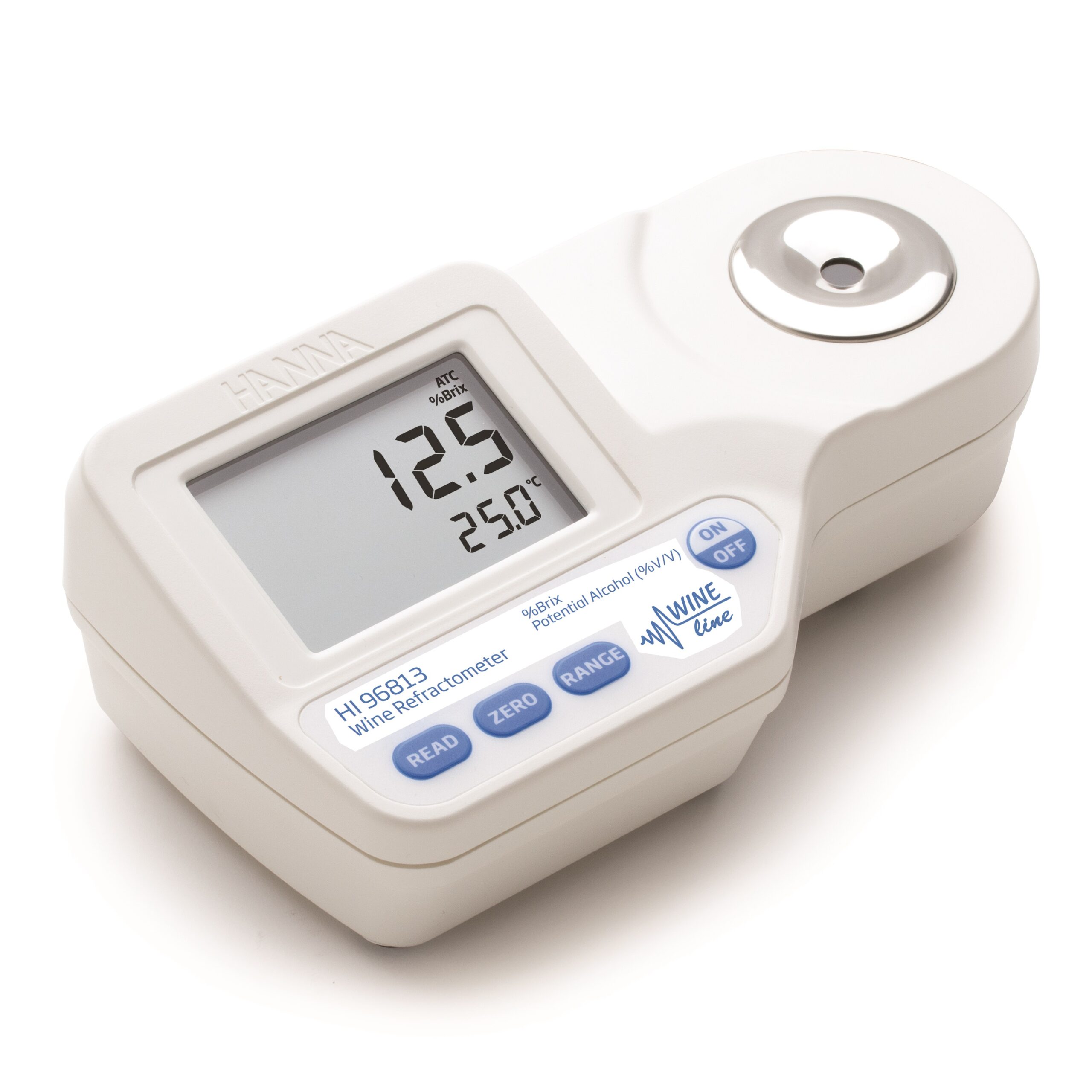 HI96813 là khúc xạ kế cầm tay dùng để chuyển đổi chỉ số khúc xạ của mẫu thành nồng độ sucrose theo đơn vị phần trăm theo trọng lượng (%Brix). Chuyển đổi này được dựa theo Sách Phương pháp ICUMSA (Ủy ban Quốc tế cho các phương pháp thống nhất của đường phân tích) về những thay đổi trong chỉ số khúc xạ với nhiệt độ trong một phần trăm theo trọng lượng dung dịch glucose. Vì phần lớn đường trong nước ép nho thường là fructose và glucose thay vì sucrose, nên kết quả đo đôi khi được xem là “Brix Biểu Kiến”.