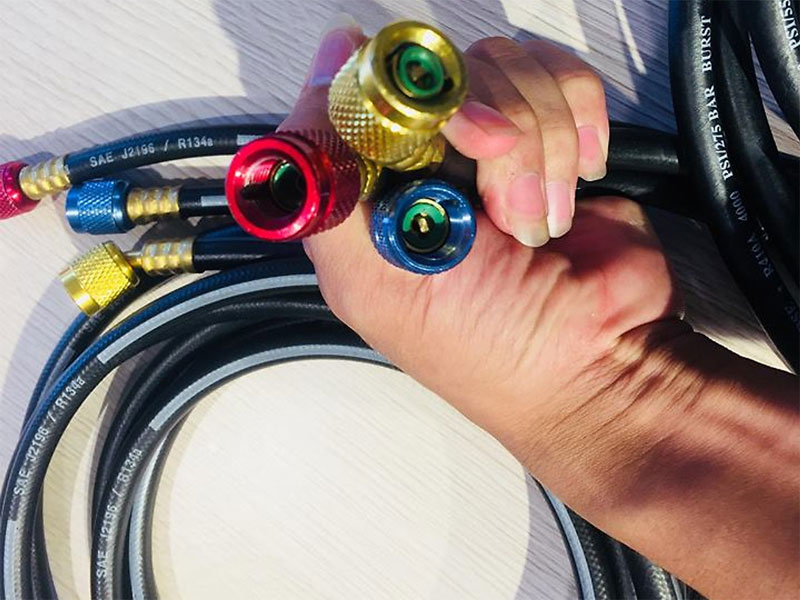 Thành phần chủ yếu của dây dẫn gas là Polycarbonate, cao su tổng hợp bền chắc, chống gãy, chịu được áp lực cao. Thân đồng hồ bơm gas máy lạnh được làm từ hợp kim nhôm siêu nhẹ, siêu bền.
