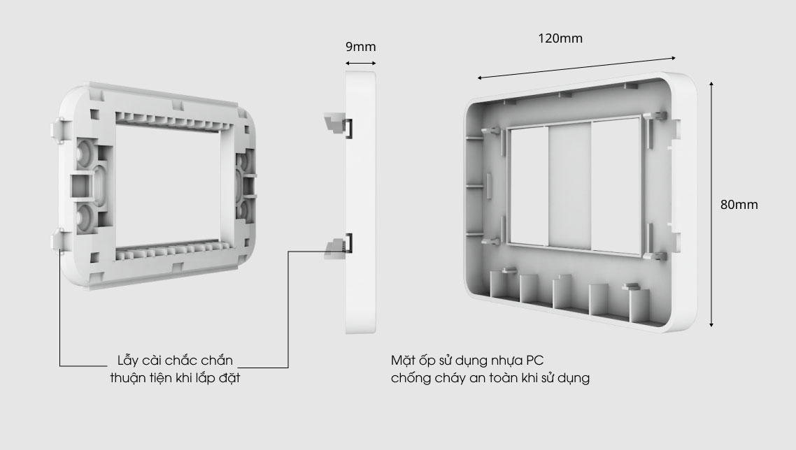 Mặt công tắc ổ cắm âm tường Rạng Đông MOC01 80x120x9/2H