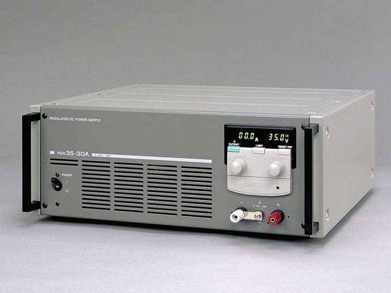 Máy cấp nguồn DC KIKUSUI PAN-A Series (DC Power supply) là tất cả các model đều được thiết kế và trang bị cẩn thận với tính năng bảo vệ quá áp (OVP) và nhiều chức năng an toàn khác nhau. Sản phẩm gồm một bộ điều chỉnh trước sử dụng FET và một bộ điều chỉnh nối tiếp sử dụng bóng bán dẫn điện, cung cấp đặc tính đầu vào chất lượng cao của bộ điều chỉnh sau cũng như độ méo sóng hài nguồn điện thấp của điều khiển pha loại đầu vào cuộn cảm.
