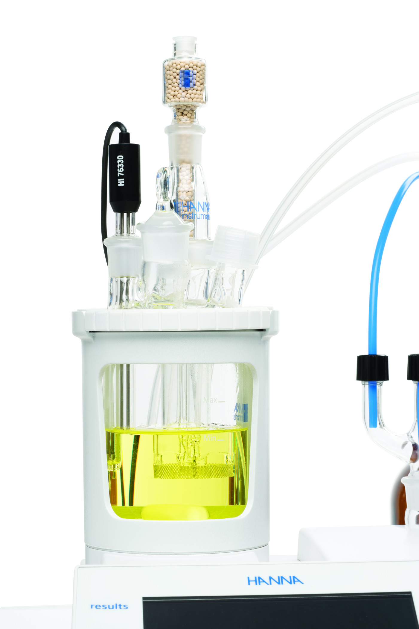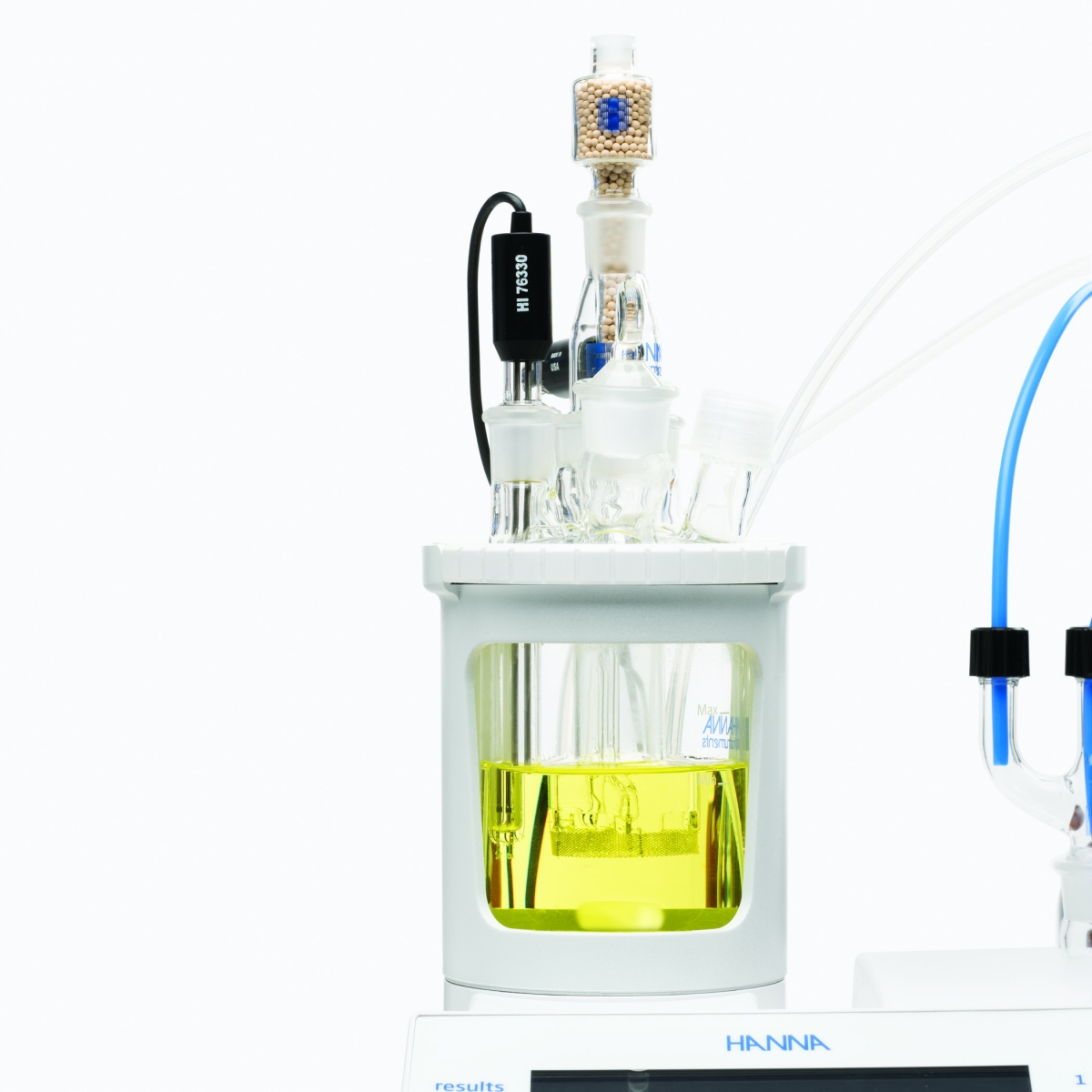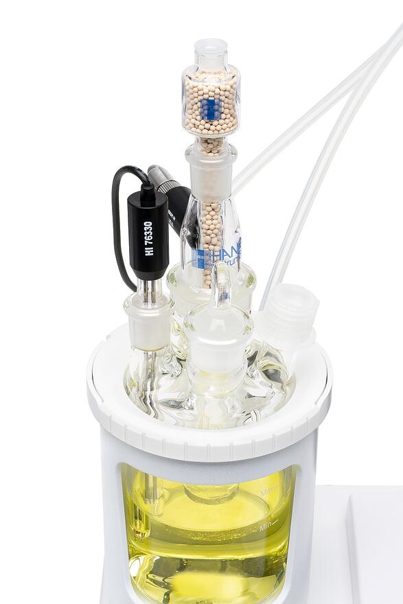 HI934 có cổng lấy mẫu nhanh với vách ngăn cao su có thể thay thế cho phép đưa mẫu nhanh và dễ dàng vào bình chuẩn độ. Một máy khuấy từ tích hợp đảm bảo tính đồng nhất cho một phản ứng chính xác và nhanh chóng.