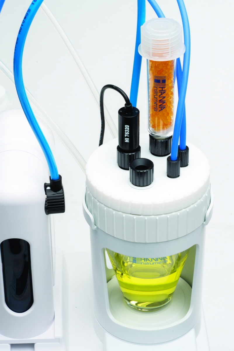 HI933 có cổng lấy mẫu nhanh với vách ngăn cao su có thể thay thế cho phép đưa mẫu nhanh và dễ dàng vào bình chuẩn độ. Một máy khuấy từ tích hợp đảm bảo tính đồng nhất cho một phản ứng chính xác và nhanh chóng.