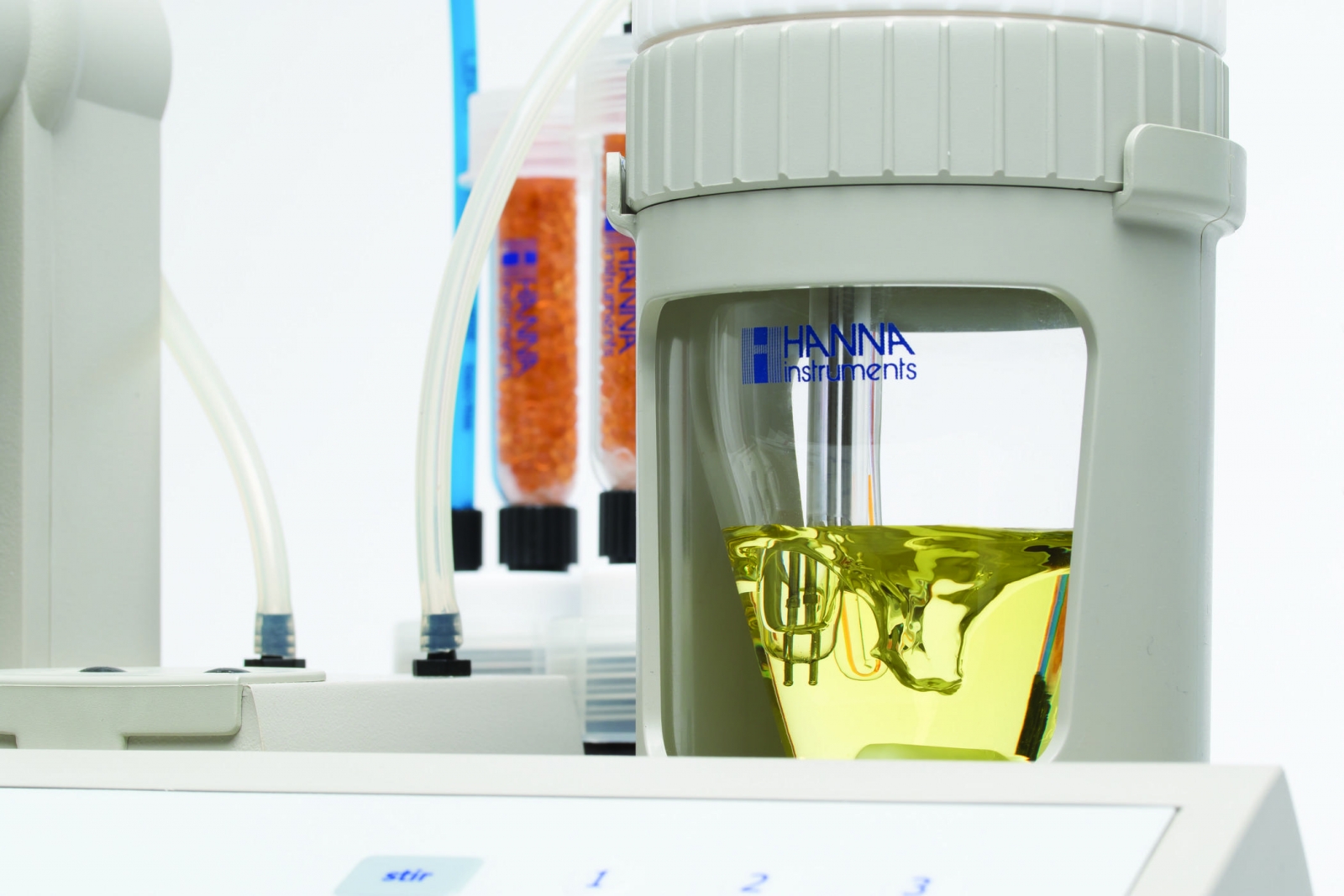 HI903 có cổng lấy mẫu nhanh với vách ngăn cao su có thể thay thế cho phép đưa mẫu nhanh và dễ dàng vào bình chuẩn độ. Một máy khuấy từ tích hợp đảm bảo tính đồng nhất cho một phản ứng chính xác và nhanh chóng.