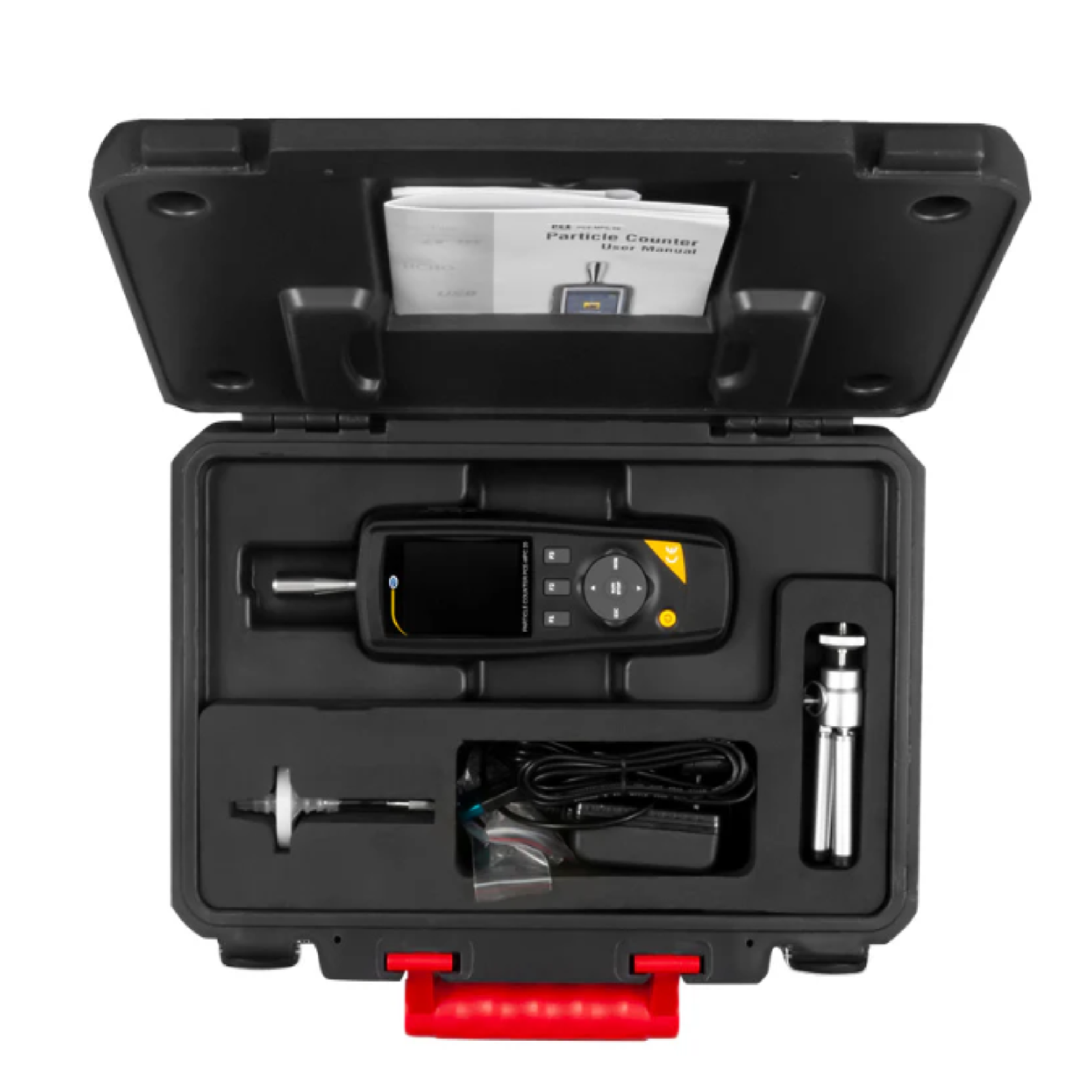 Ngoài chức năng đếm hạt, máy đo bụi còn đo nồng độ khối lượng PM2.5 và PM10. Bơm hiệu suất cao tích hợp đảm bảo lưu lượng không khí đủ cho thiết bị đo bụi. Ngoài ra, thiết bị còn có khả năng đo nhiệt độ, độ ẩm và điểm sương.