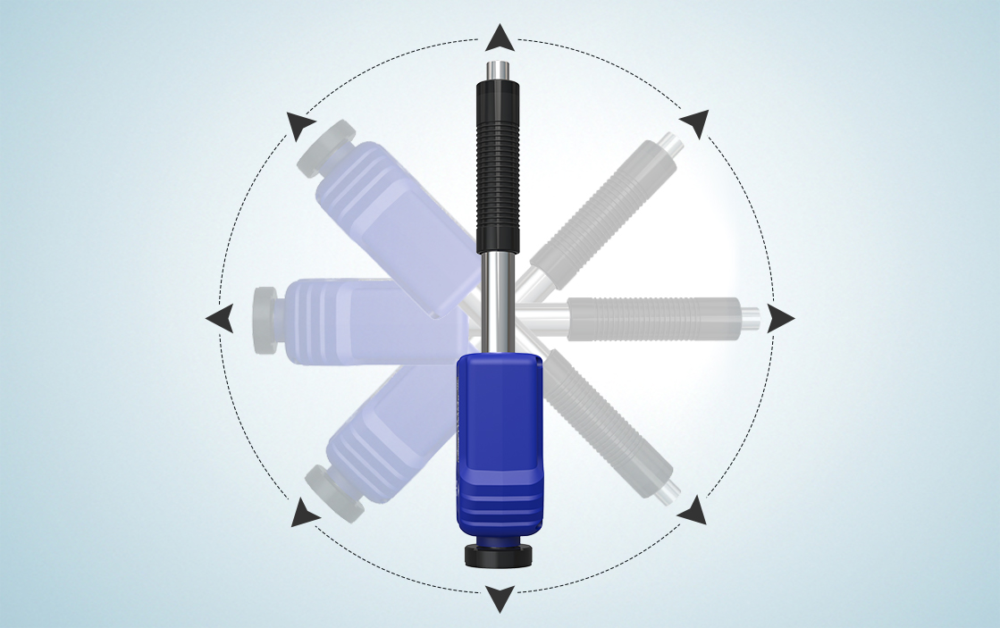 Thiết bị có thể đo ở mọi góc độ, với cảm biến định hướng tích hợp trong đầu dò giúp tự động bù đắp lỗi đo lường khi tác động từ các hướng khác nhau, cho phép đo đa góc dễ dàng. - Khả năng đo nhiều loại vật liệu kim loại