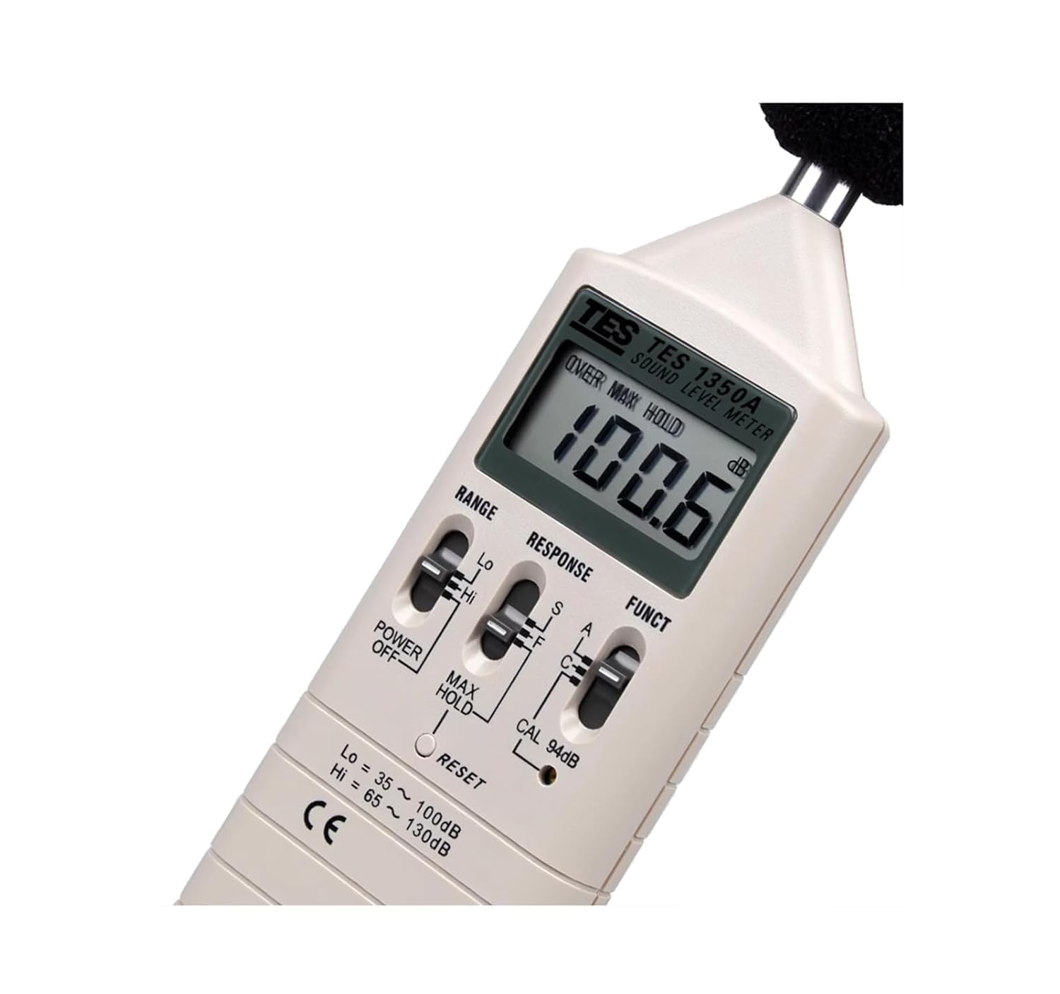 TES 1350A có khả năng đo âm thanh trong dải từ 35 đến 130 dB, đáp ứng các tiêu chuẩn quốc tế về đo lường tiếng ồn.
