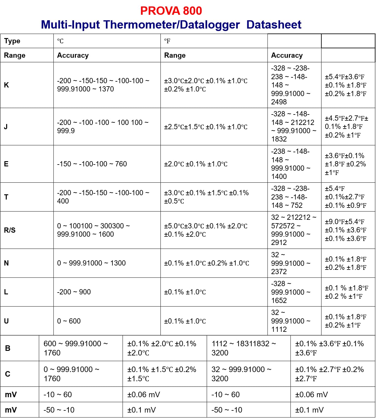 - Độ chính xác cao: Prova 800 có độ chính xác cơ bản lên đến 0,1% ± 1 ℃ (loại K).