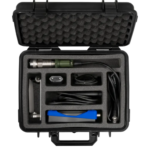 Cảm biến rung đi kèm với một giá đỡ từ tính, được thiết kế để gắn vào các bề mặt cong với bán kính tối thiểu 20 mm / 0.78″. Ngoài việc đo rung động, cảm biến gia tốc còn có một cảm biến nhiệt độ hồng ngoại bên ngoài, có khả năng đo nhiệt độ bề mặt trong khoảng -70 … 380 °C / 158 … 716 °F. Thiết bị cũng hỗ trợ đo tốc độ không tiếp xúc, cho phép kiểm tra số vòng quay của các hệ thống thông gió.