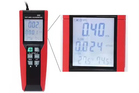 - Độ Phân Giải: 0.01 m/s, 0.001 m³/phút, 0.1 °C, 0.1 °F, 0.1% RH