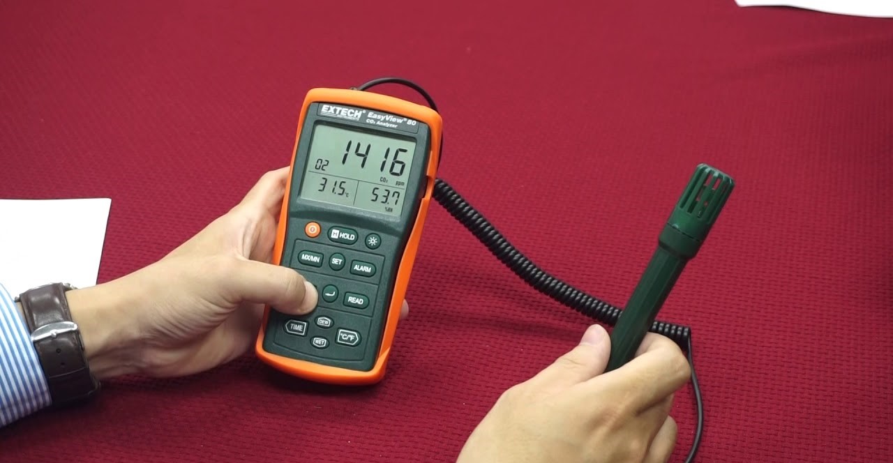 - Thiết bị Extech EA80 đo lường hàm lượng Carbon Dioxide, sử dụng cảm biến CO2.