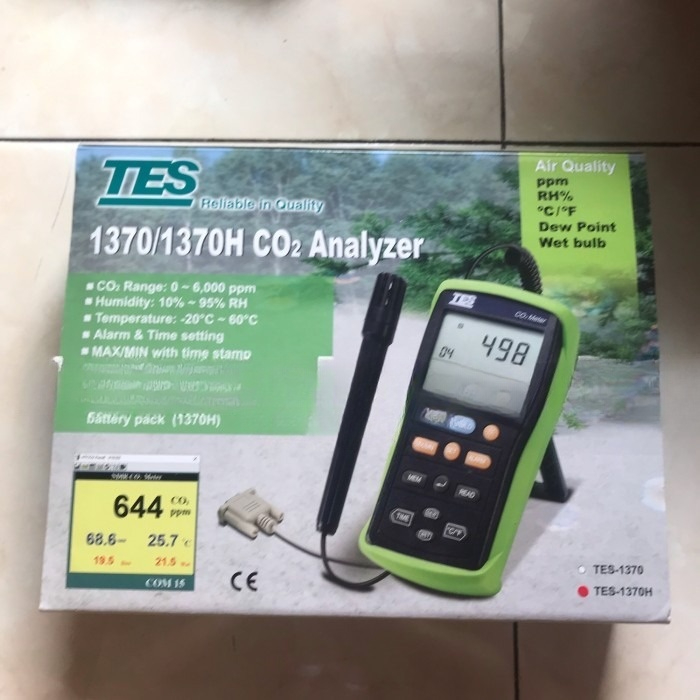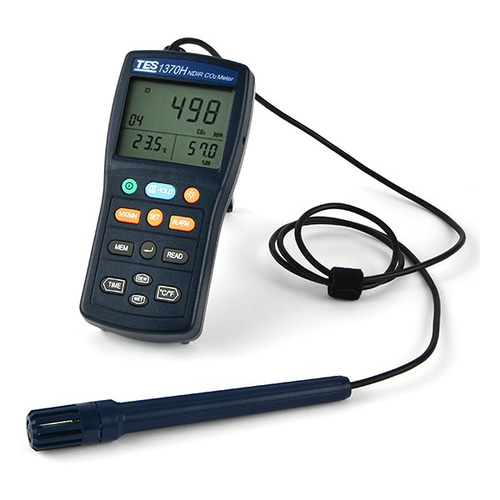 TES 1370H có khả năng đo nồng độ CO2 với dải đo rộng từ 0 đến 6000 ppm, hoạt động trên nguyên tắc lấy mẫu khuếch tán. Máy đo này hiển thị đồng thời ba thông số gồm nhiệt độ, độ ẩm và CO2 trên màn hình 3 khoang độc đáo.