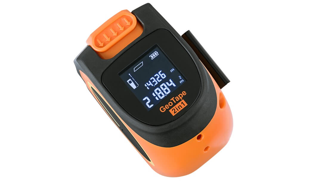- 1 máy đo khoảng cách laser GeoTape 2in1 với thước cuộn 5m, nhập khẩu chính hãng từ Geo-Fennel.