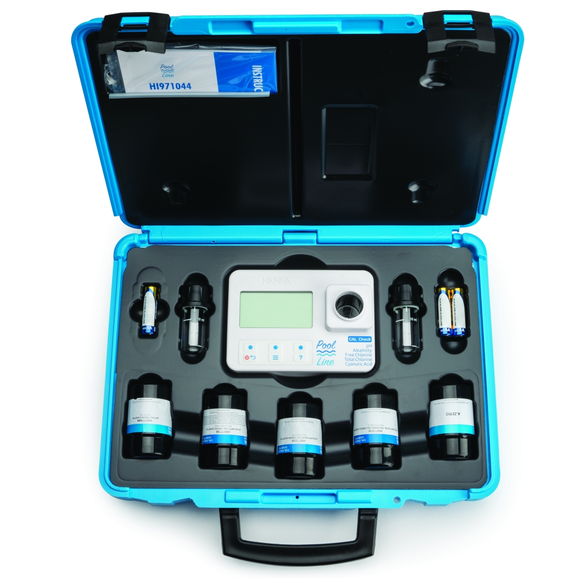 HI971044C cung cấp kèm Các dung dịch chuẩn CAL Check cho máy và Vali đựng máy tiện lợi, chuyên nghiệp