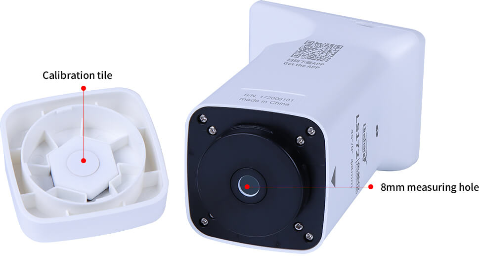 Nắp đáy tích hợp bảng trắng hiệu chuẩn, giúp tránh mất mát và loại bỏ các thao tác phức tạp. - Tấm định vị giúp đo màu chính xác hơn