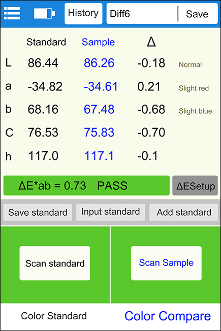 Máy đo màu tích hợp nhiều bảng màu tự nhiên, giúp dễ dàng khớp màu đo được với mã màu gần nhất. Thiết bị LS173 cũng hỗ trợ chức năng so sánh chênh lệch màu với nhiều phương pháp cộng màu tiêu chuẩn và khả năng thiết lập ngưỡng chênh lệch màu. Công thức chênh lệch màu có thể được lựa chọn một cách linh hoạt, cho phép thực hiện thử nghiệm QC một cách nhanh chóng và hiệu quả.