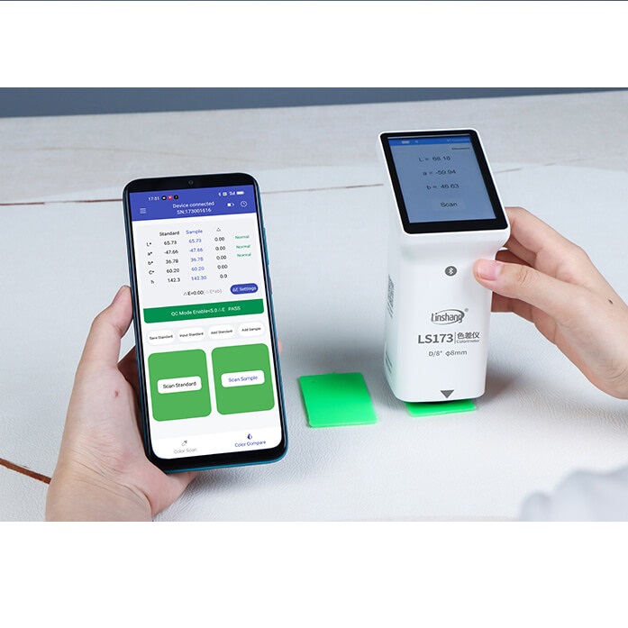 Máy đo kiểm so lệch màu Linshang LS173 được thiết kế với thành phần gương D/8° (SCI), mang lại kết quả đo gần với màu sắc thực tế của mẫu vật. Thiết bị Linshang LS173 này thường được ứng dụng trong các ngành như sơn ô tô, gia công kim loại, đá, in ấn, vật liệu trang trí, da, và nhựa, giúp quản lý màu sắc sản phẩm và kiểm soát chất lượng màu sắc. Máy sử dụng ánh sáng khuếch tán từ nguồn sáng tích hợp dạng hình cầu, rất lý tưởng để đo màu các mẫu có bề mặt kết cấu và độ bóng cao.