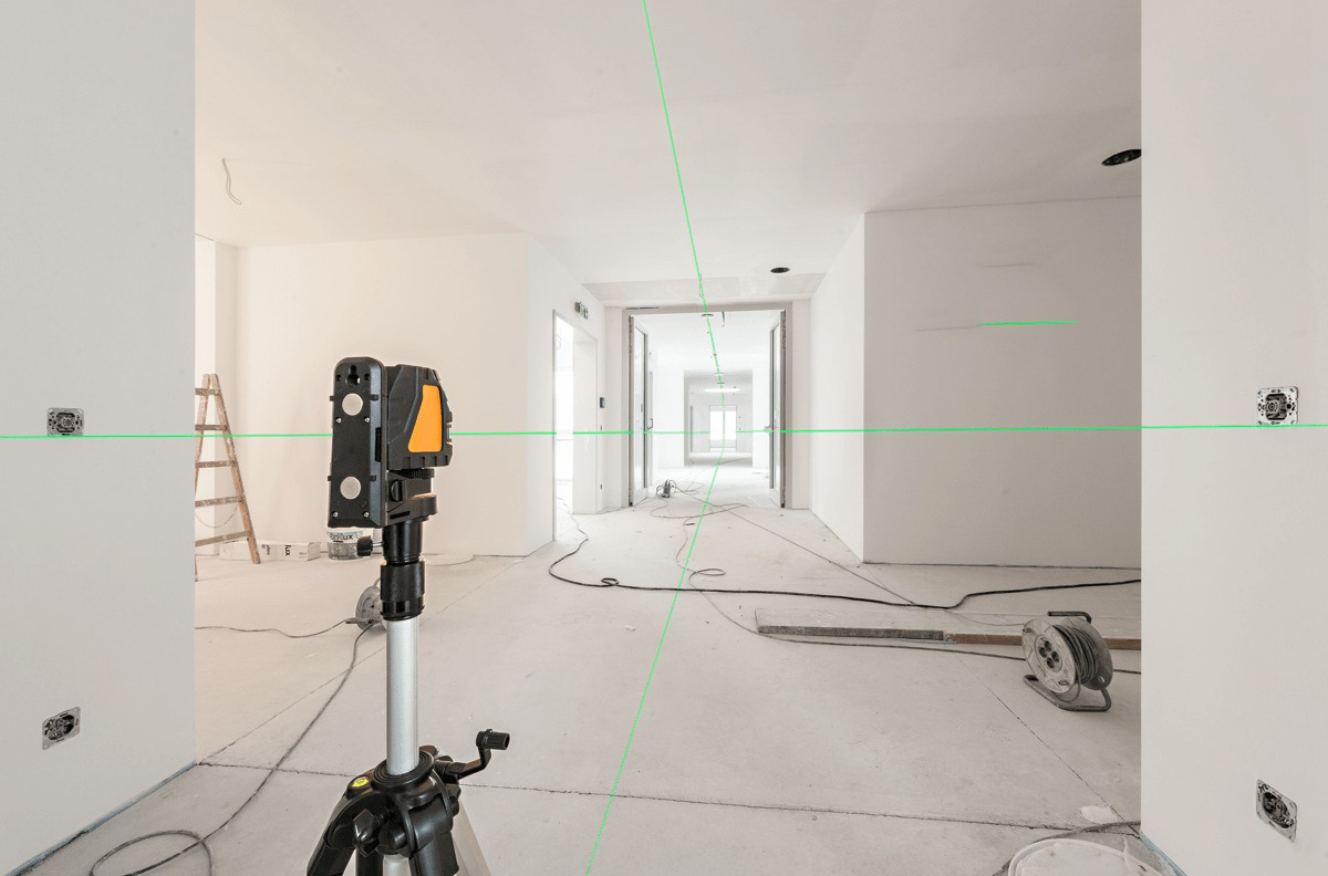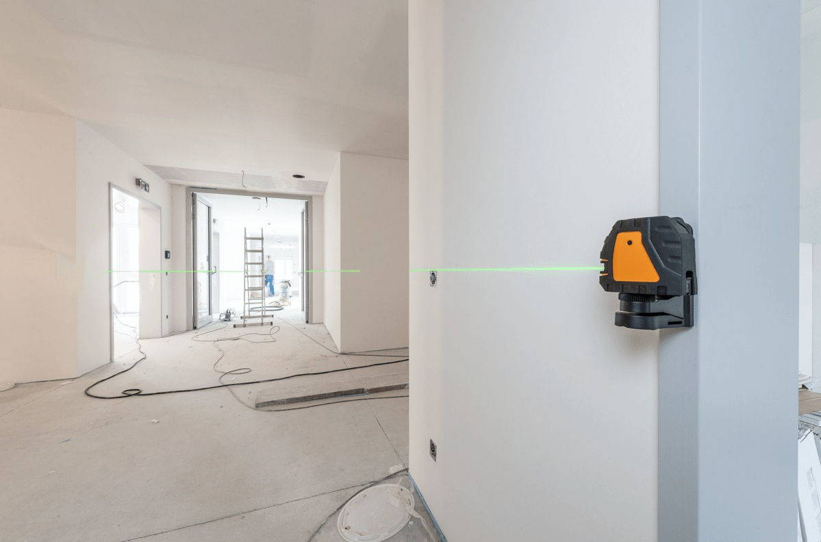- 1 tia ngang thủy bình và 1 tia đứng vuông góc tia ngang, tạo thành 1 ke vuông góc trên tường.