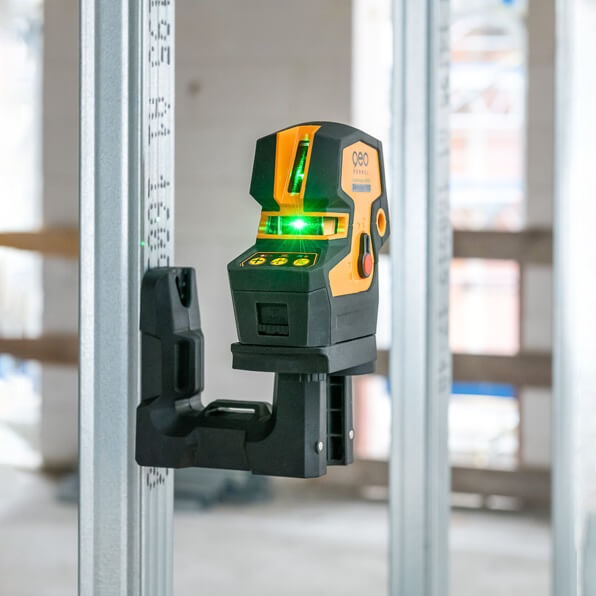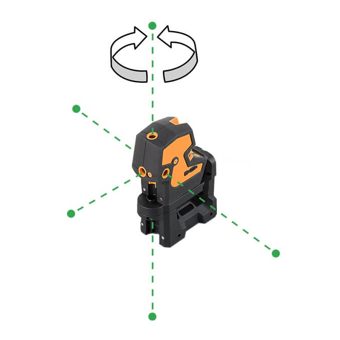 - 1 đường laser đứng khẩu độ 180° và 1 đường laser ngang khẩu độ 160°, tạo 1 chữ thập.