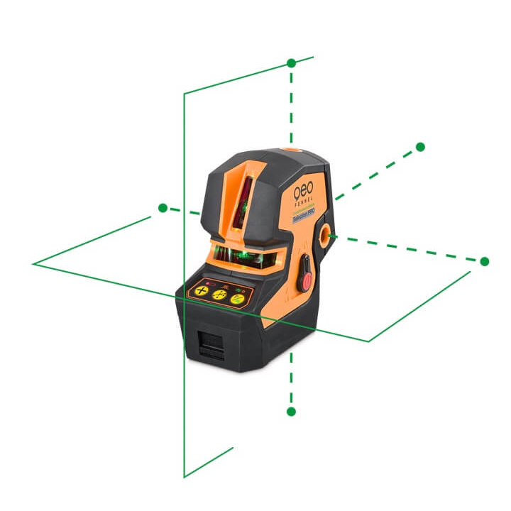 Máy cân bằng laser ngoài trời CrossPointer5 Green – Geo-Fennel tia laser màu xanh sáng, rõ nét. 5 điểm và 2 đường vuông góc. Tự động cân bằng, nhanh, ổn định, chính xác. Sử dụng pin sạc cổng USB. Bán kính làm việc lên tới 50 m. Bán kính làm việc với bộ thu (receiver) lên tới 80 m (option). 3 điểm cân bằng cao độ, 2 điểm lập lòn. 1 đường ngang khẩu độ 180° và 1 đường đứng vuông góc khẩu độ 160°. Xoay máy 360° dễ dàng. Chức năng làm việc nghiêng bằng tay. Phát âm báo và chớp đèn khi vượt tầm tự cân bằng. Đế treo đa năng có nam châm và lỗ đinh. Vỏ bọc cao su chống sốc.