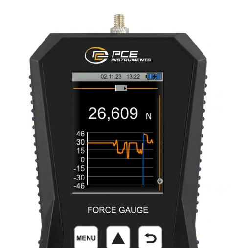Bộ nhớ trong 32 GB của thiết bị cung cấp không gian cho 30 triệu điểm đo, cho phép tạo, lưu trữ và xuất nhật ký đo. Thiết bị này có cổng USB-C để truyền dữ liệu đo vào phần mềm trên máy tính. Màn hình LCD đồ họa trên thiết bị hiển thị các giá trị đo lường cả về số và đồ họa. Ngoài ra, biểu đồ cột sẽ hiển thị giá trị đo trong phạm vi đo đã chọn. Các giá đỡ thử nghiệm lực khác nhau có sẵn để thích nghi với cảm biến lực.