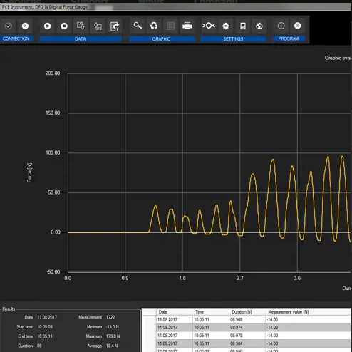 PCE PCE-DFG N 2.5K có khả năng đo cả lực kéo và lực nén với độ phân giải rất cao. Các lực kéo và nén thường được xác định trong phòng thí nghiệm để đo độ bền, lực kéo đứt, và lực cần thiết để kích hoạt nút bấm hoặc công tắc.
