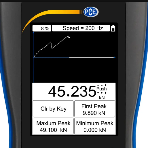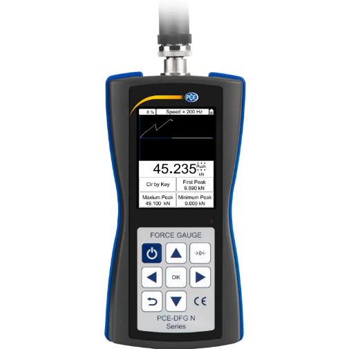 PCE PCE-DFG N 50K-ICA có khả năng đo cả lực kéo và lực nén với độ phân giải rất cao. Lực kéo hoặc lực nén thường được sử dụng trong các phòng thí nghiệm kiểm tra. Thiết bị đo lực đi kèm với một cảm biến đo ngoài, được kết nối qua cáp cảm biến dài khoảng 6 m. Cả thiết bị đo lực và cảm biến đều có gắn kết ren M20 để thực hiện đo lực kéo hoặc lực nén.