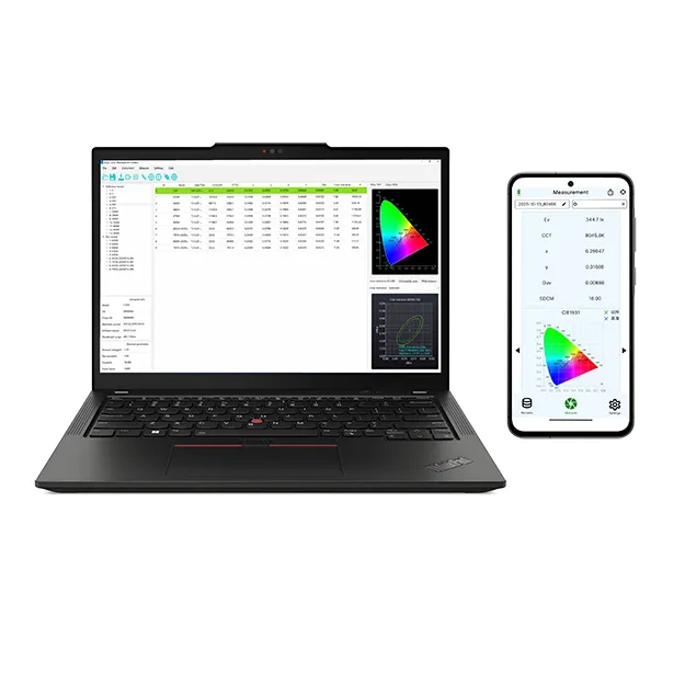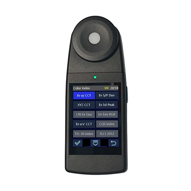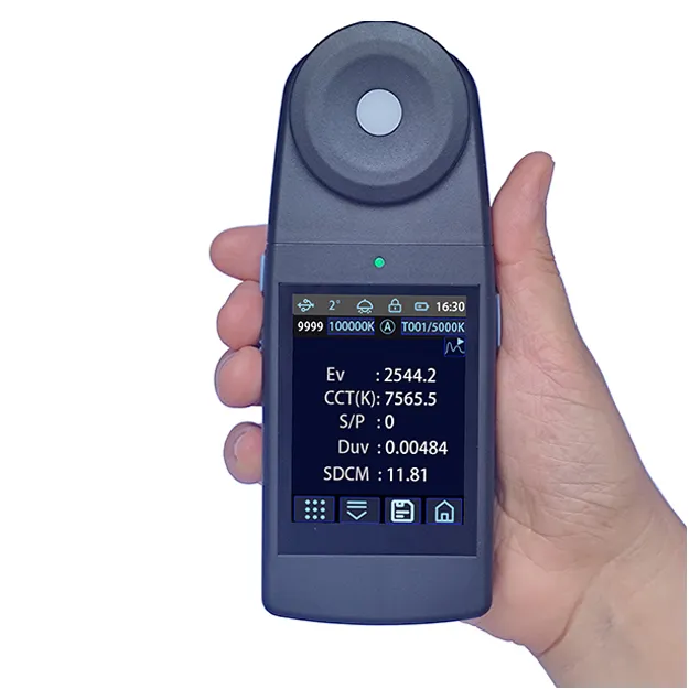 1. Thiết bị sử dụng bộ lọc XYZ và bộ dò CMOS để thu thập ba giá trị kích thích XYZ của nguồn sáng chiếu sáng hoặc màn hình trong phạm vi 400-700nm, sau đó tính toán Ev, tọa độ sắc độ và nhiệt độ màu của mẫu, giúp tiết kiệm chi phí.