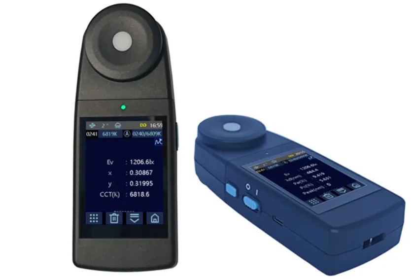Thiết bị đo độ sáng màu CL503 độc lập có thể dễ dàng thực hiện phép đo quang phổ, Ev, nhiệt độ màu, bước sóng chủ đạo và các thông số khác.
