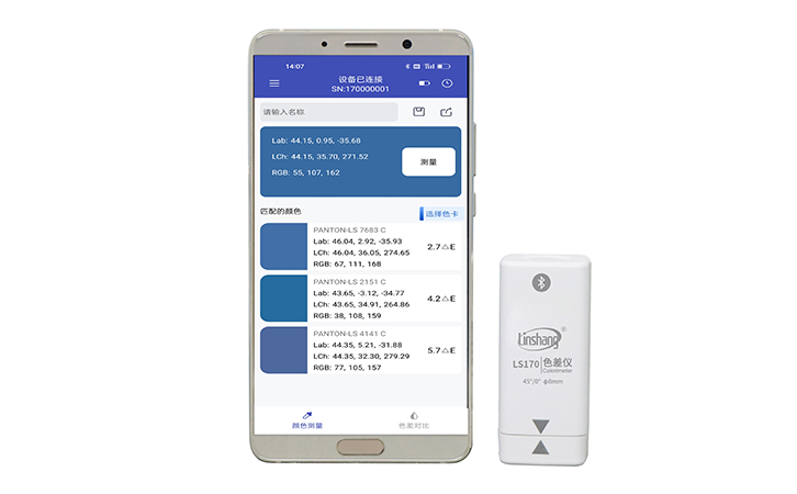 Máy đo màu thông minh và cầm tay LS170 được thiết kế để cung cấp cho người dùng khả năng đo màu và so sánh màu của vật liệu để kiểm soát màu sắc là điều quan trọng. Nó cung cấp khả năng truyền Bluetooth và có thể được sử dụng với một ứng dụng mạnh mẽ do Linshang thiết kế. Sau khi kết nối với ứng dụng qua Bluetooth, máy đo màu có thể nhanh chóng đo màu và so sánh màu sắc trên giao diện di động. Ngoài ra, nó còn có một số biểu đồ màu điện tử và có thể nhanh chóng khớp với số màu. Bạn có thể chia sẻ giá trị màu sắc cho bạn bè của bạn.
