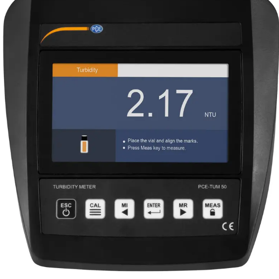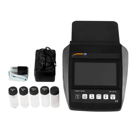 PCE PCE-TUM 50 là Máy đo màu cho nước uống và nước thải cũng như thực phẩm / Màn hình đồ họa màu / Đo NTU, EBC, ASBC / Theo tiêu chuẩn ISO 7027 (90°) / Hoạt động bằng điện AC (bộ chuyển đổi điện 220V AC) / Giao diện USB