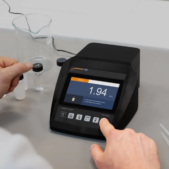 Máy đo độ đục có khả năng đo độ đục của chất lỏng lên đến 2000 NTU. Hơn nữa, đơn vị đo có thể được chuyển đổi sang EBC (European Brewery Convention) hoặc ASBC (American Society of Brewing Chemists). Các giá trị đo được hiển thị trên màn hình màu lớn. Máy đo độ đục chủ yếu được sử dụng trong phòng thí nghiệm và do đó được vận hành bằng nguồn điện cắm vào. Thông qua giao diện USB phía sau, máy đo độ đục có thể được kết nối với máy tính và bộ nhớ có thể được xóa.