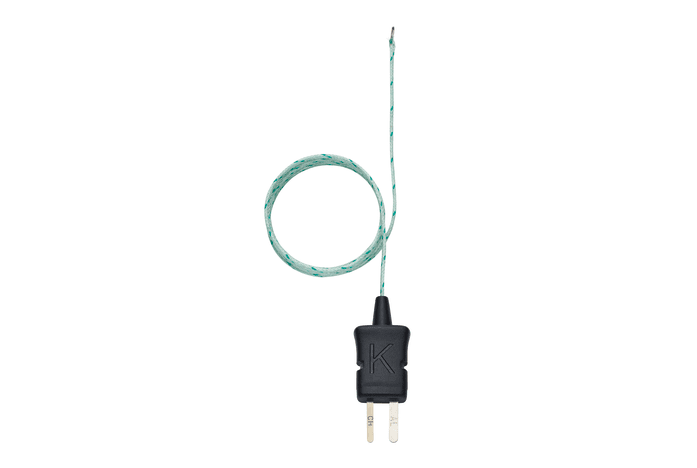 - Cảm biến nhiệt độ có thể dễ dàng uốn, thời gian đáp ứng nhanh (TC loại K, class 1) với cáp được bọc sợi thủy tinh (dài 800 mm), dải đo -50 đến +400 °C.