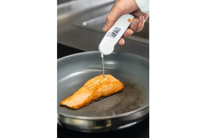 Sau khi đo xong, bạn chỉ cần gập đầu đo lại và bỏ Testo 103 của mình vào túi cho đến khi thực hiện lần đo tiếp theo. Nhiệt kế thực phẩm Testo 103 không chỉ đáp ứng HACCP và được chứng nhận EN 13485, mà còn có khả năng chống nước khiến nó trở nên lý tưởng để sử dụng trong ngành thực phẩm.