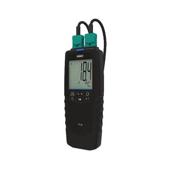 Máy đo nhiệt độ tiếp xúc KIMO TT22 là nhiệt kế cầm tay cặp nhiệt điện loại K và T – 2 kênh (từ -200 đến +1300°C). Màn hình hiển thị 1 dòng