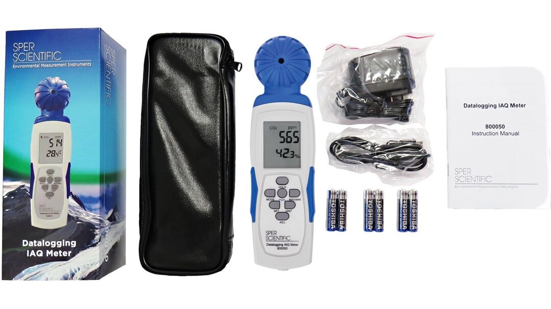 Máy đo nồng độ CO2 nhiệt độ và độ ẩm Sper Scientific 800050 Đo nồng độ CO2. Đo nhiệt độ không khí (ºC/ºF), độ ẩm không khí (%RH). Datalogger lưu số đo. Theo dõi chất lượng không khí. Chất lượng không khí kém sẽ gây mệt mỏi, mất tập trung. Thậm chí gây bệnh tật (Ví dụ: hội chứng bệnh văn phòng).