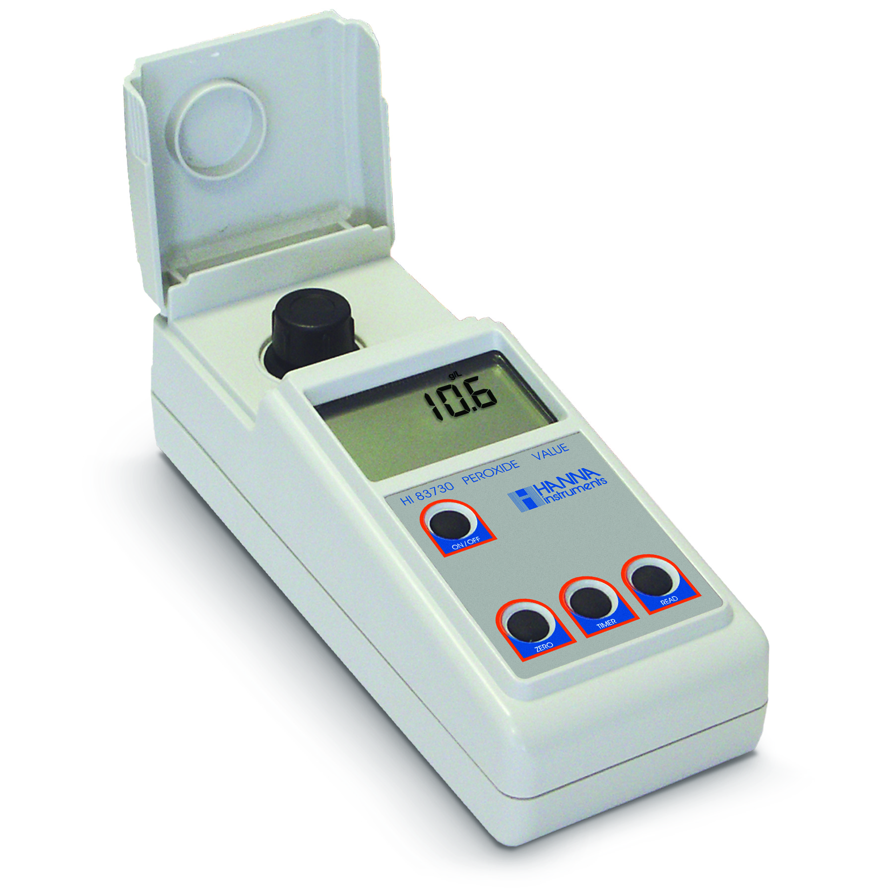 HI83730-02 áp dụng phương pháp EC 2568/91 để đo nồng độ peroxit trong dầu oliu dưới 25.0 meq O2/kg. Khi thuốc thử được thêm vào mẫu có chứa peroxit, mẫu sẽ chuyển thành màu vàng; nồng độ càng cao, màu càng đậm. Sự thay đổi màu sắc kết hợp phương pháp so màu được phân tích dựa theo Luật Beer-Lambert. Đây là nguyên lý ánh sáng được hấp thụ bởi một màu bổ sung, và các bức xạ phát ra phụ thuộc vào nồng độ. Để xác định nồng độ peroxit, một bộ lọc nhiễu băng hẹp tại 466 nm (màu xanh lam) chỉ cho phép ánh sáng màu xanh lam được phát hiện bởi các bộ tách sóng quang silicon và bỏ qua tất cả các ánh sáng nhìn thấy khác phát ra từ đèn vonfram. Khi sự thay đổi màu khi mẫu phản ứng tăng, sự hấp thụ các bước sóng ánh sáng cụ thể cũng tăng lên, trong khi truyền qua giảm.