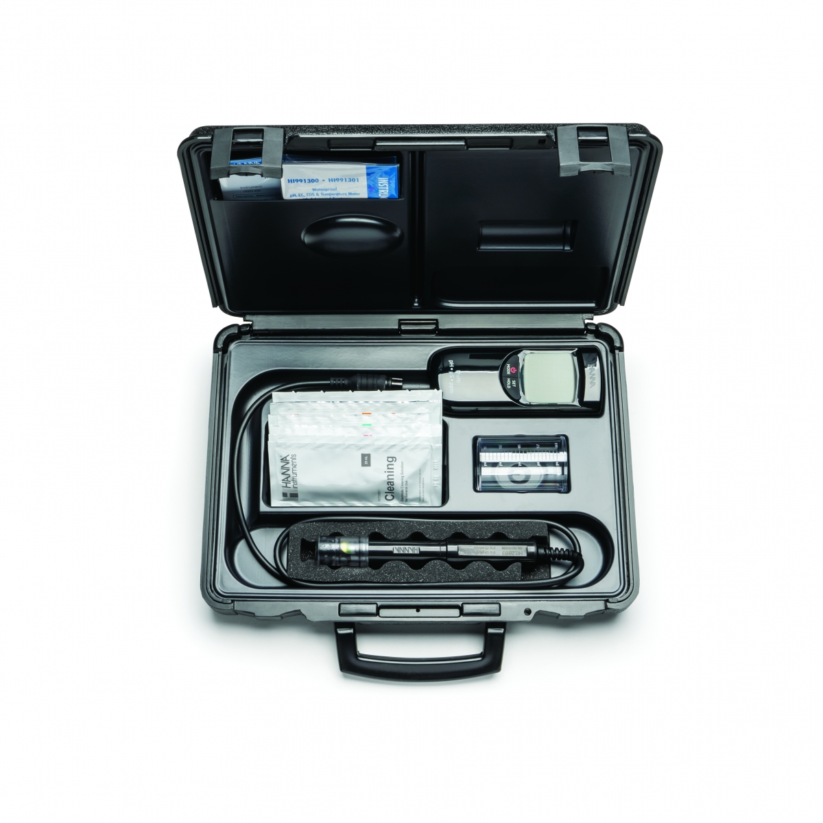 Cung cấp gồm | – Máy đo HI991301 – Đầu dò pH/EC/TDS/nhiệt độ HI12883, cáp 1m – 1 gói dung dịch pH4.01 và 1 gói dung dịch pH7.01 – 1 gói dung dịch chuẩn EC 12.88 mS/cm – 1 gói dung dịch chuẩn TDS 6.44 ppt (g/L) – 2 gói dung dịch rửa điện cực – 1 cốc nhựa 100 mL – Pin trong máy – Chứng nhận chất lượng của máy và đầu dò – Hướng dẫn sử dụng |