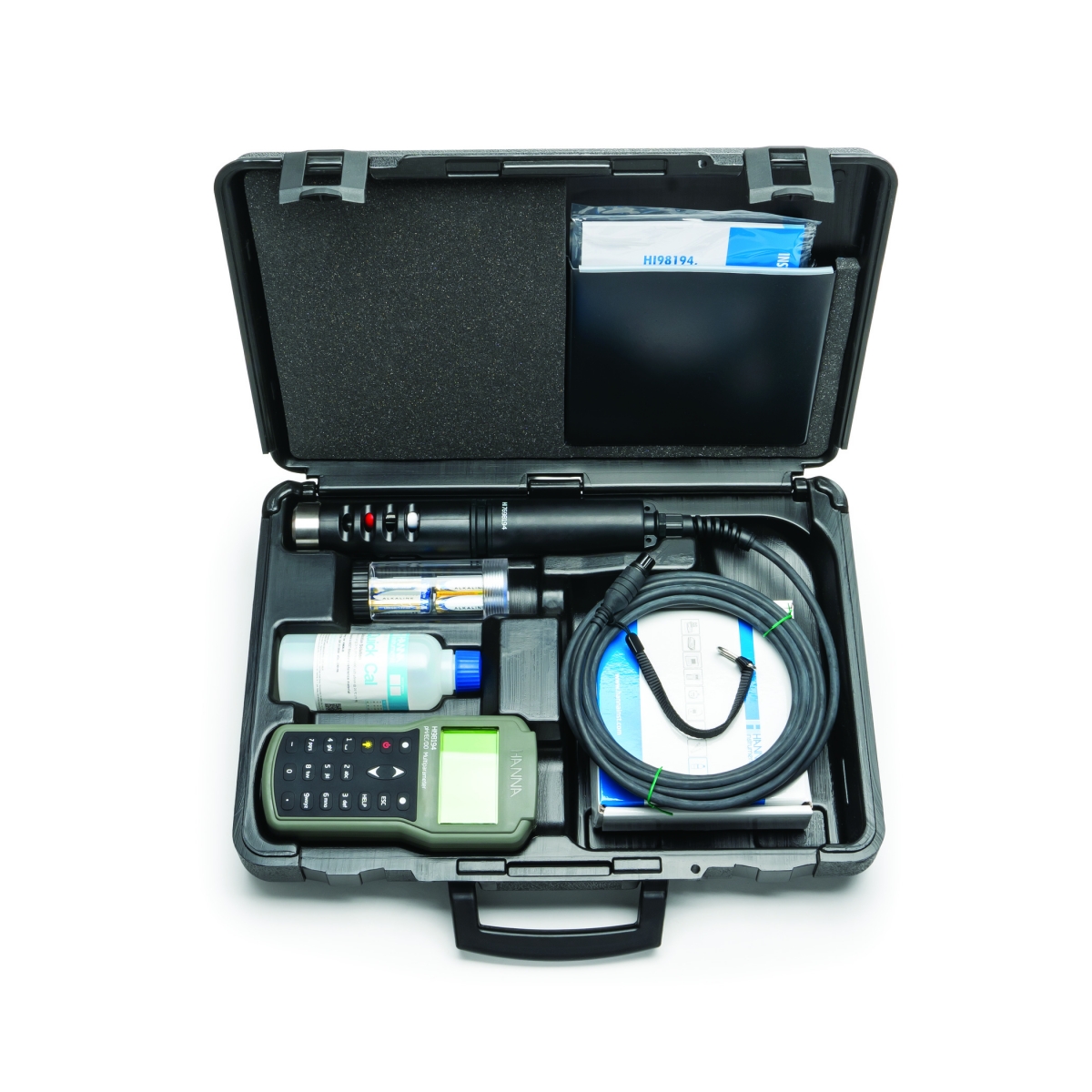 Cung cấp gồm | – Máy đo HI98194 – Đầu dò đa thông số HI7698194 + HI98194: điện cực cáp 4m + HI98194/10: điện cực cáp 10m + HI98194/20: điện cực cáp 20m + HI98194/40: điện cực cáp 40m – Cảm biến pH/ORP HI7698194-1 – Cảm biến EC/TDS/NaCl HI7698194-3 – Cảm biến oxy hòa tan HI7698194-2 – Dung dịch chuẩn nhanh HI9828-0 cho pH và độ dẫn (230mL) – Bộ phụ kiện cho cảm biến oxy hòa tan HI76981942 (1 chai dung dịch điện phân châm màng DO HI7042S (30mL) và nắp màng (5 cái) và vòng ron O (5 cái), 1 xilanh với 1 gói mỡ bôi trơn các vòng O) – Cáp USB. – 4 pin AA 1.5V. – Hướng dẫn sử dụng. – Chứng nhận chất lượng cho máy, đầu dò và các cảm biến. – Phiếu bảo hành. – Vali đựng máy. |