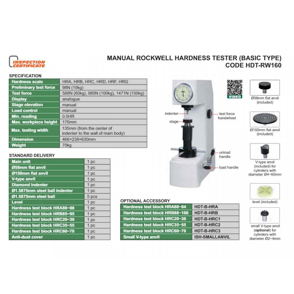 Thông Số Kỹ Thuật của máy đo độ cứng tự động Rockwell Insize HDT-RA151