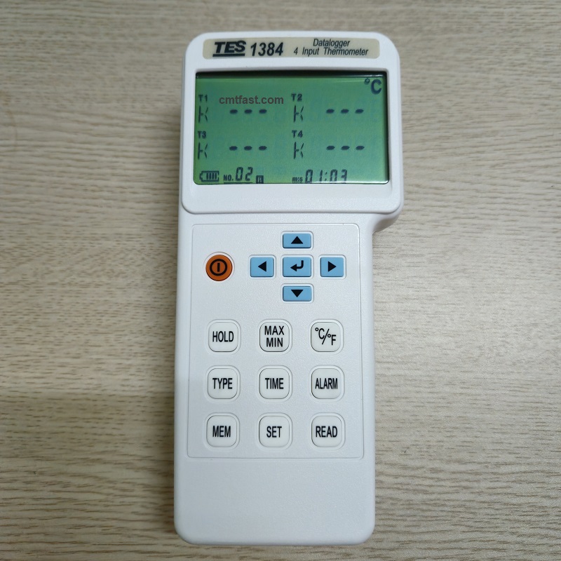 Máy ghi dữ liệu/đo nhiệt 4 kênh TES 1384 là thiết bị chuyên dụng cho việc đo nhiệt độ bằng cặp nhiệt K, J, E, T, R, S, N, L. Thiết bị TES 1384 này cho phép hiển thị đồng thời 4 kênh T1, T2, T3 và T4, mang lại sự tiện lợi trong việc theo dõi và kiểm tra nhiệt độ.