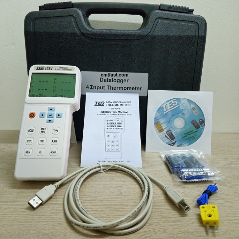 Cung cấp sản phẩm máy ghi dữ liệu/đo nhiệt 4 kênh TES 1384 bao gồm: