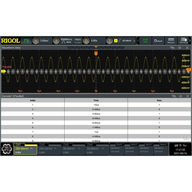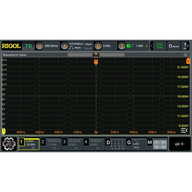 Rigol DHO914 hỗ trợ 16 kênh số. Một thiết bị có thể phân tích cả tín hiệu analog và số để đáp ứng các tình huống thiết kế và kiểm tra nhúng. Với một mức giá phải chăng tương đương với việc mua một thiết bị cấp đầu vào, bạn có thể truy cập vào phân tích bus tự động dạng serial và song song, phân tích biểu đồ bode, và các chức năng khác để đáp ứng nhu cầu kiểm tra trong lĩnh vực R&D, giáo dục, và nghiên cứu khoa học.