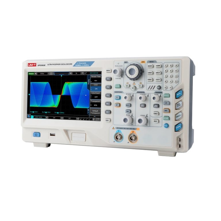 Oscilloscope Uni-T UPO3502E là thiết bị đo lường đa chức năng, chuyên nghiệp được thiết kế để đáp ứng nhu cầu của các kỹ sư và kỹ thuật viên trong các lĩnh vực như điện tử, truyền thông, bán dẫn, R&D, giáo dục và nhiều ngành khác. Máy được trang bị công nghệ Ultra Phosphor 2.0 tiên tiến, tốc độ lấy mẫu nhanh và các chức năng đo lường toàn diện, giúp việc kiểm tra, phân tích tín hiệu trở nên dễ dàng hơn bao giờ hết.
