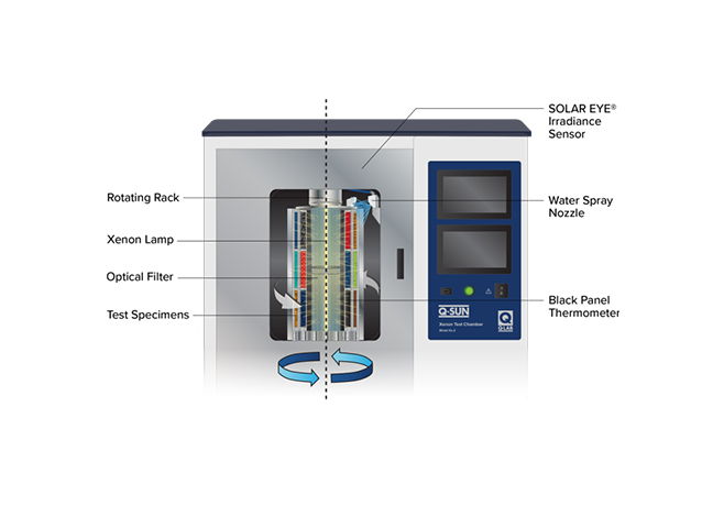 Một sản phẩm tiếp xúc ngoài trời với ánh nắng trực tiếp sẽ có cường độ ánh sáng tối đa chỉ trong vài giờ mỗi ngày. Máy thử nghiệm thời tiết hồ quang Q-SUN Xe-2 có thể tăng tốc kết quả bằng cách cho mẫu thử nghiệm tiếp xúc với ánh nắng tương đương buổi trưa mùa hè trong 24 giờ mỗi ngày. Do đó, sự xuống cấp của mẫu vật có thể được tăng tốc rất nhanh.