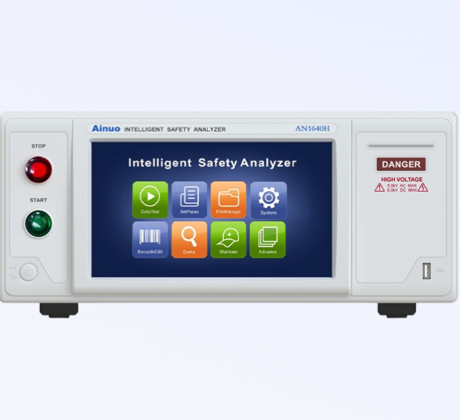 Máy phân tích an toàn điện thông minh Ainuo AN1640(F) có thể đáp ứng các yêu cầu thử nghiệm tiêu chuẩn an toàn của nhiều sản phẩm điện khác nhau như thiết bị gia dụng, đèn tiết kiệm năng lượng, thiết bị y tế, thiết bị thông tin, thiết bị âm thanh và video, phòng thí nghiệm thiết bị và cọc sạc.