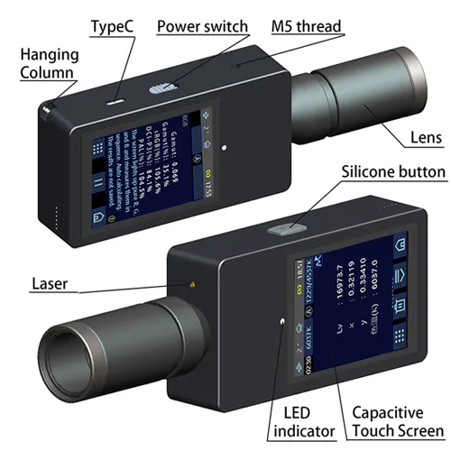 Thiết bị đo độ sáng màu Huicolor CI510 độc lập có thể dễ dàng thực hiện phép đo Lv, nhiệt độ màu, bước sóng chủ đạo và các thông số khác.