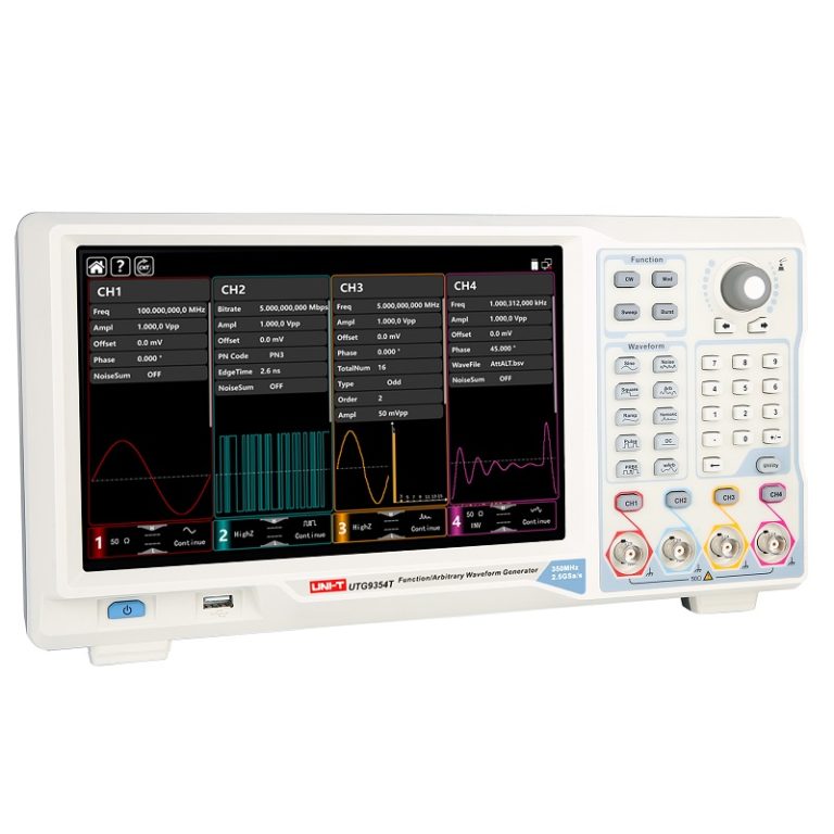 Uni-T UTG9354T là một máy phát xung, phát hàm tùy ý chuyên nghiệp kết hợp công nghệ tiên tiến Direct Digital Synthesizer (DDS). Với độ chính xác và hiệu suất cao, sản phẩm này đáp ứng tốt mọi nhu cầu đo kiểm điện tử. UTG9354T sở hữu màn hình cảm ứng lớn 10,1 inch và giao diện dễ sử dụng, giúp tăng hiệu quả làm việc và trải nghiệm người dùng.