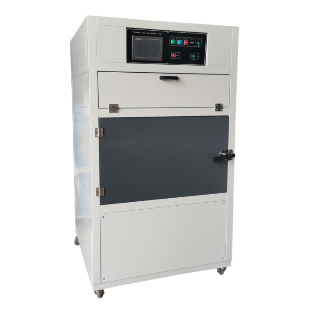 250-800nm, khả năng tái tạo tối đa của cơ chế lão hóa của mặt trời, có thể được thiết lập để thử nghiệm trong 24 giờ tiếp xúc liên tục với môi trường ánh sáng tương đương với buổi trưa mùa hè, so với môi trường ngoài trời thực tế, cường độ ánh sáng trung bình mạnh hơn, thời gian tiếp xúc trung bình hàng ngày dài hơn, do đó có thể nhanh chóng có được kết quả thử nghiệm.