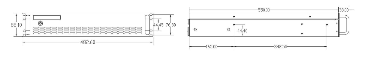 Kích thước: 88.1 * 482.6 * 521.4 mm (Cao*Rộng*Sâu)
